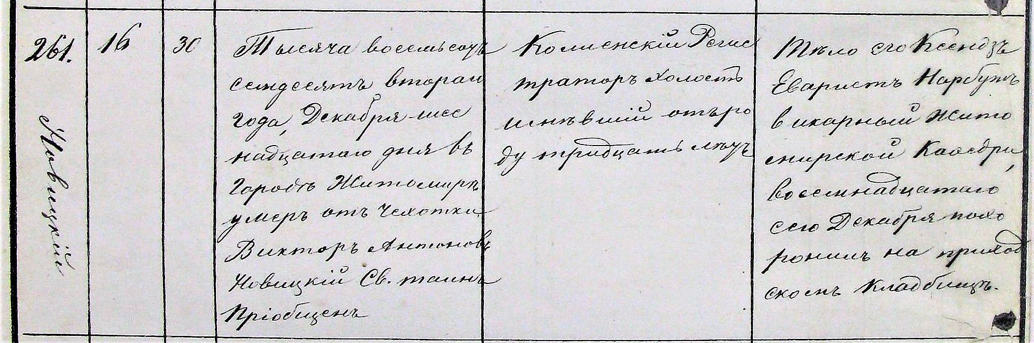 Metryka zgonu Wiktora, na gruźlicę.
