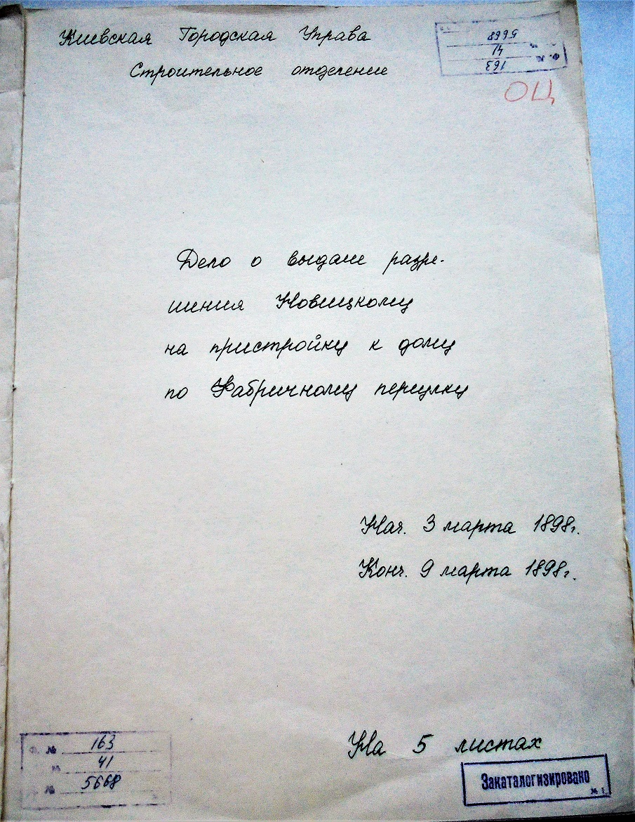 Дело о выдаче разрешения Новицкому на пристройку к дому по Фабричному