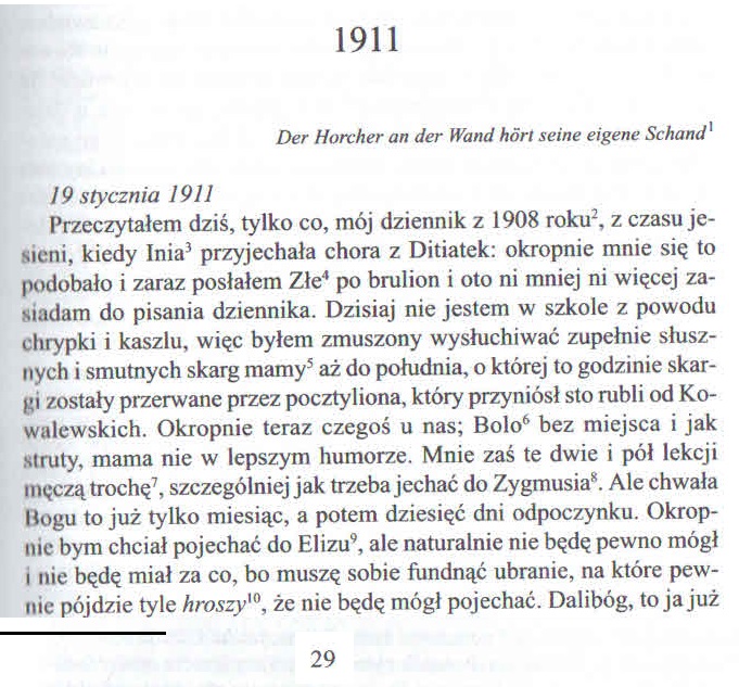 Dzienniki Tom I rok 1911, strona 29. Wpis ze środy 19. stycznia 1911.